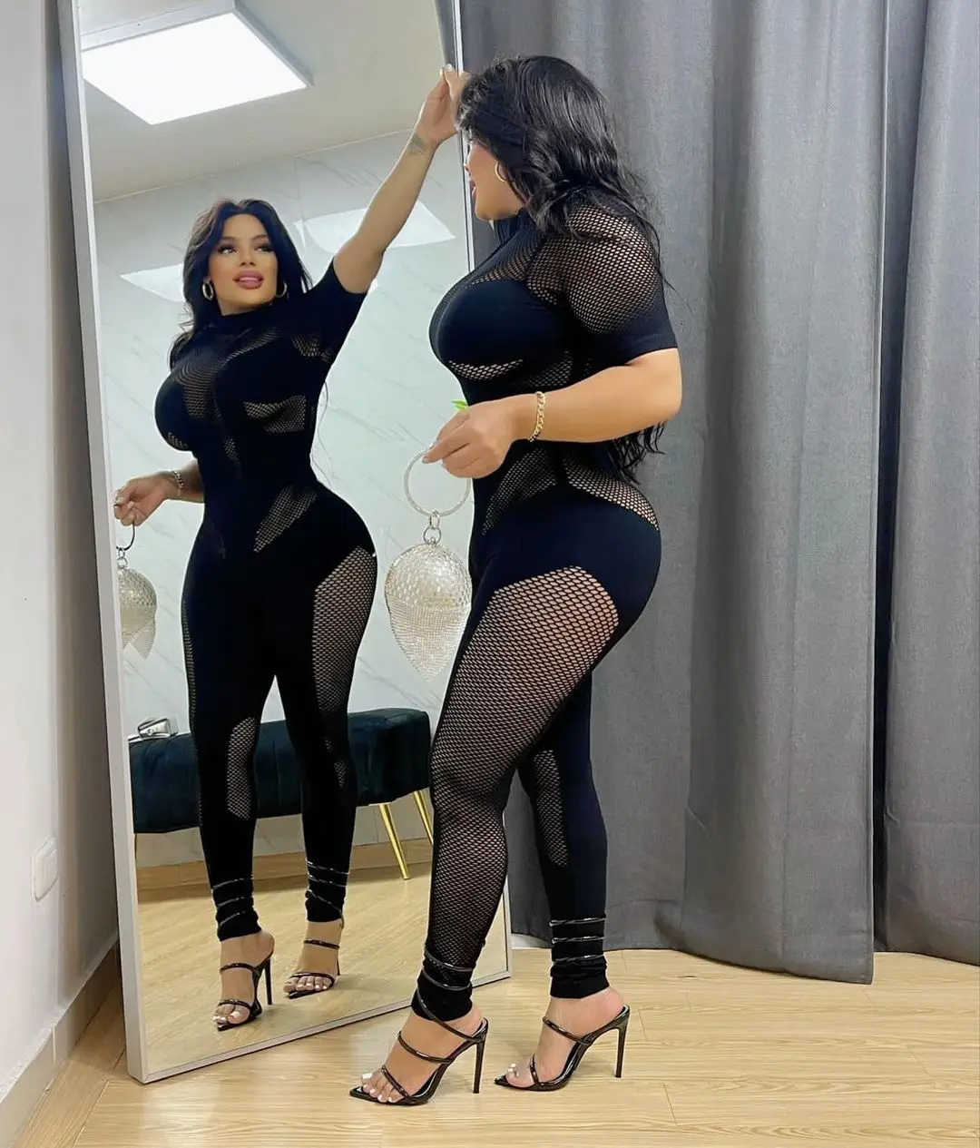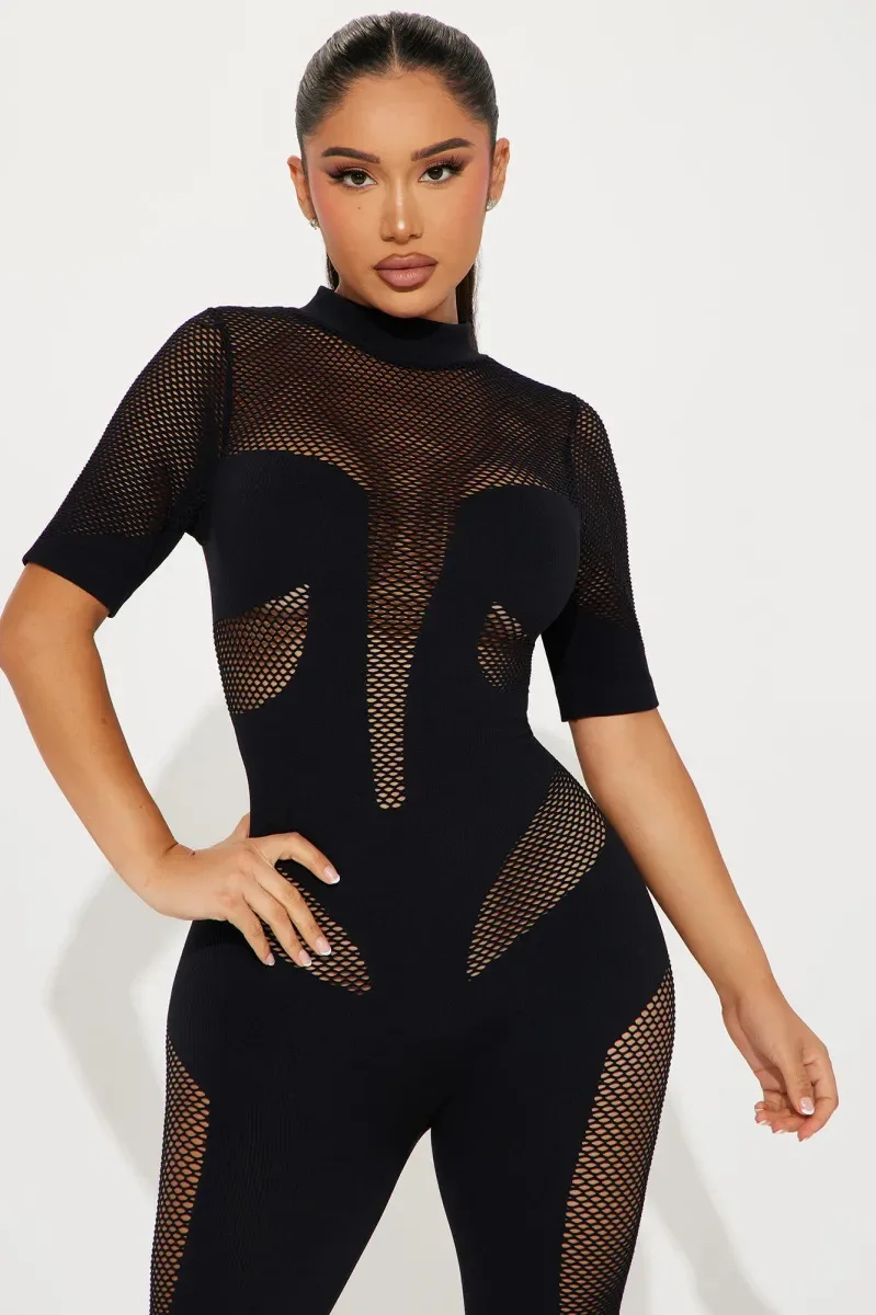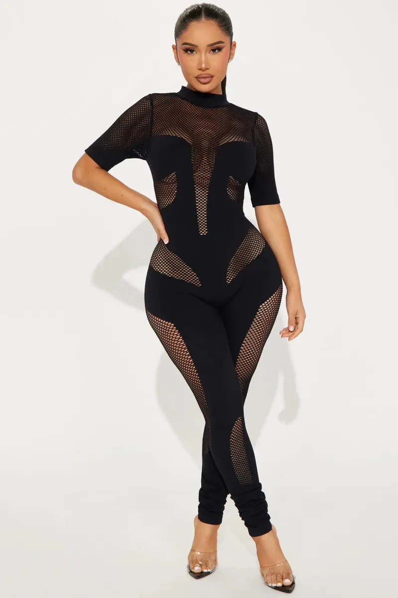 Short Sleeve Women Mesh Hollow Out O-neck Rompers Jumpsuits 2024 Summer Sleep Night Club Party One Piece Sexy Outfits