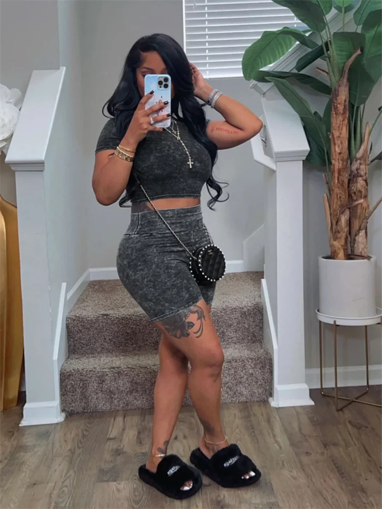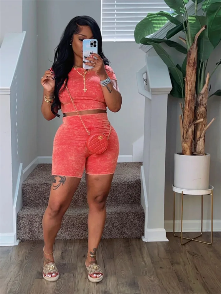 Summer Casual Good 2 Two Pieces Sets Women Tracksuits Outfits Short Sleeve Crop Tops Red Black Shorts Great Sweatsuits 2024